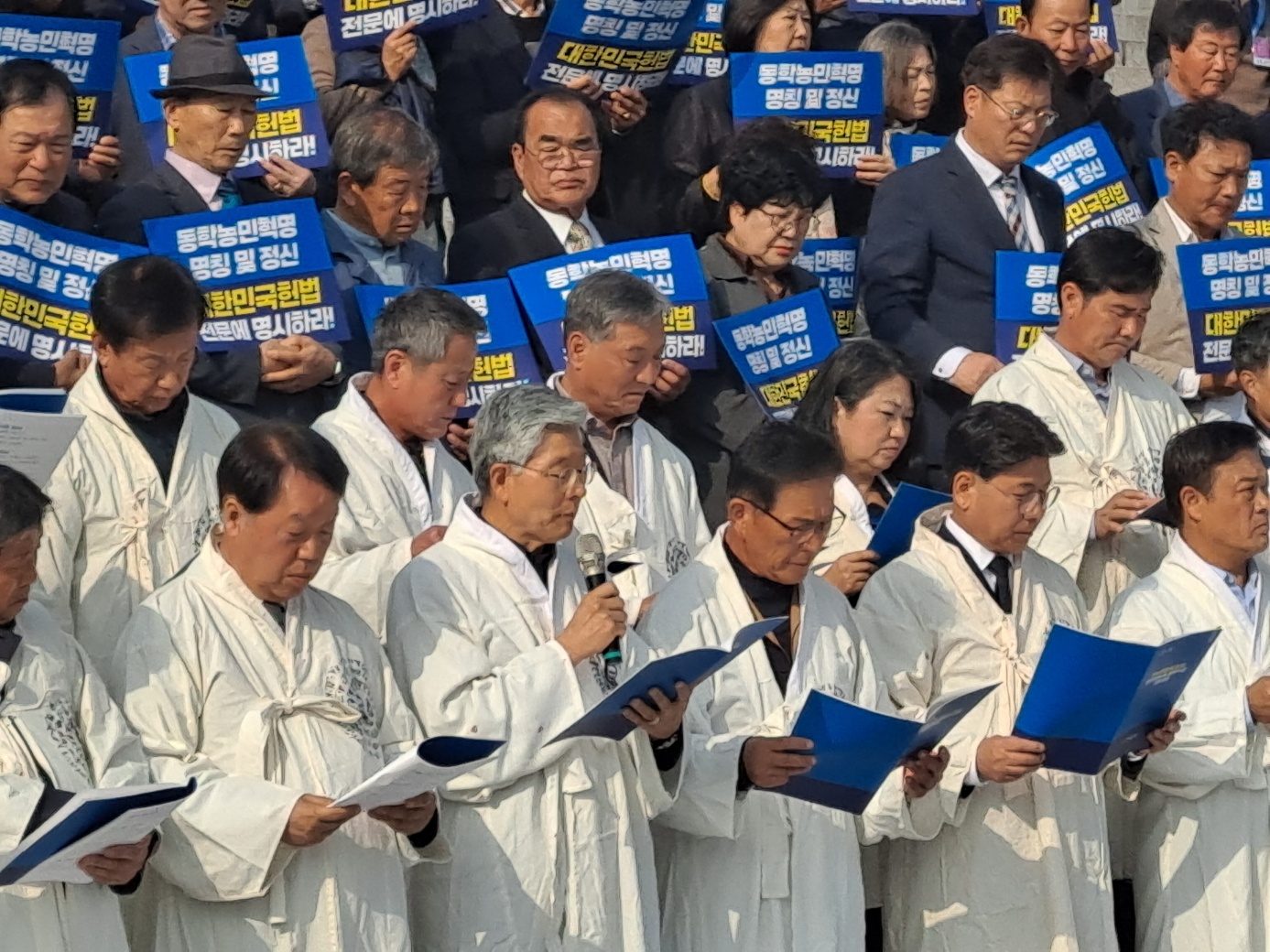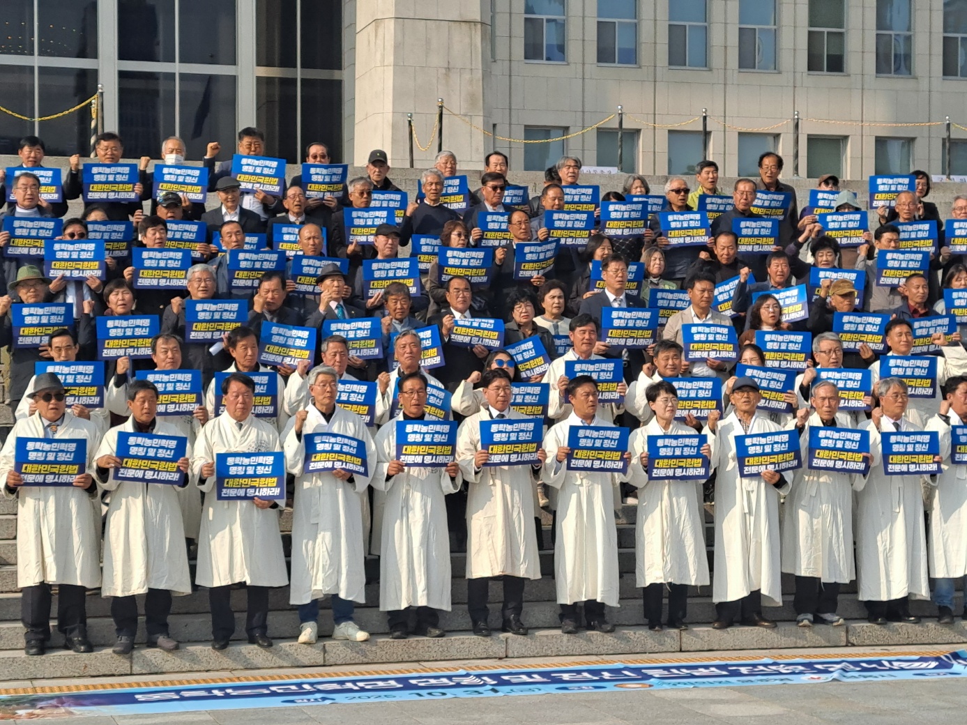 국회 본관 앞에서는 이학수 시장님과 정읍관내 동학관련단체장, 전국 동학농민혁명 관련단체장, 시민들이 참여한 가운데 헌법전문 명시를 위한 공동선언문을 낭독하고